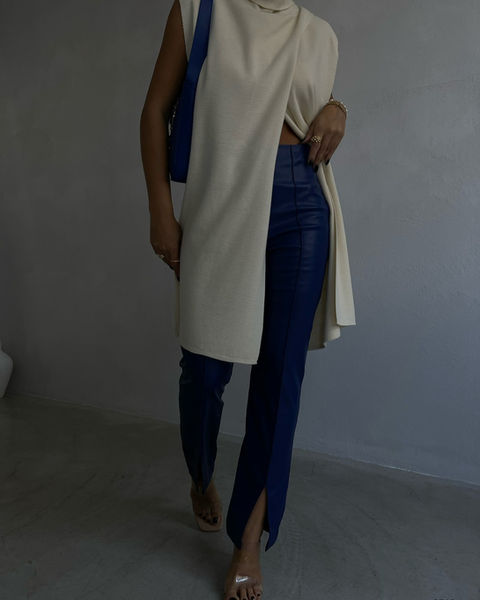 Kaşkorse Kumaş Yırtmaçlı Siyah Elbise